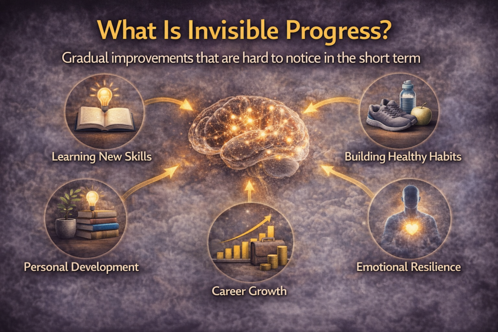 Invisible progress refers to improvements that happen slowly and are difficult to notice in the short term. These changes may occur in areas such as: