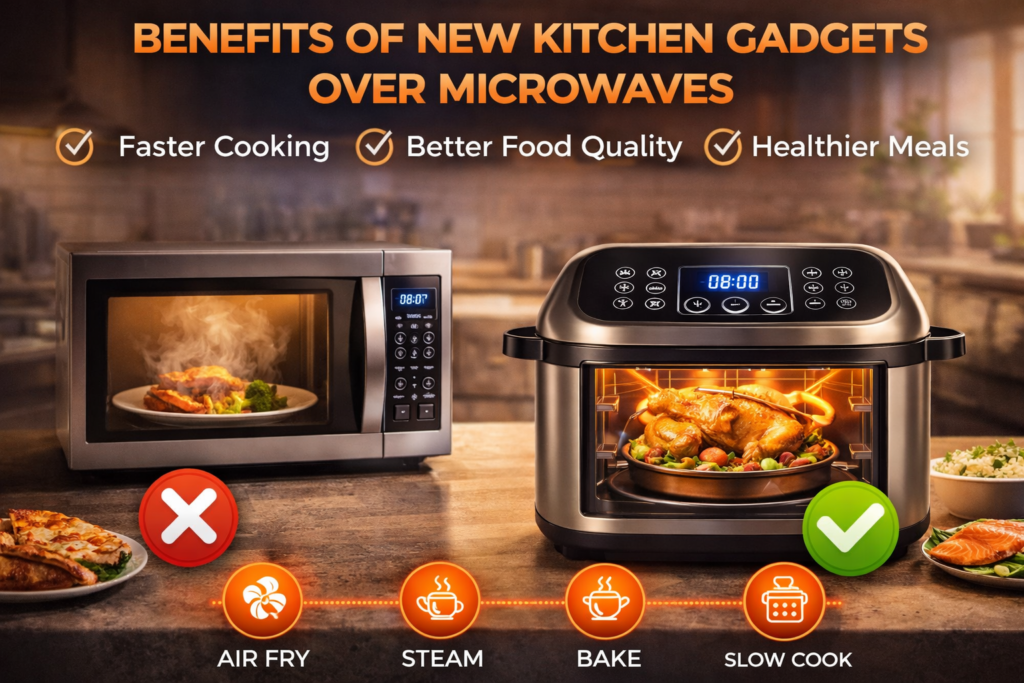 Q1. Why are people replacing microwaves with new kitchen gadgets?