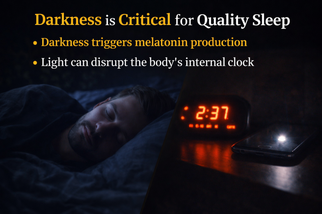 By supporting melatonin production, enhancing deep sleep, and protecting emotional well-being, a dark sleep environment helps the body and brain function at their best.